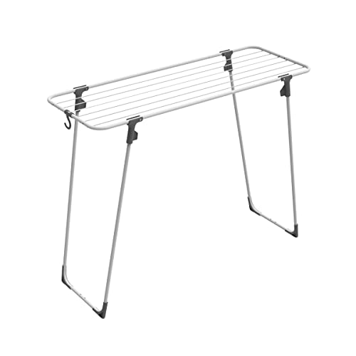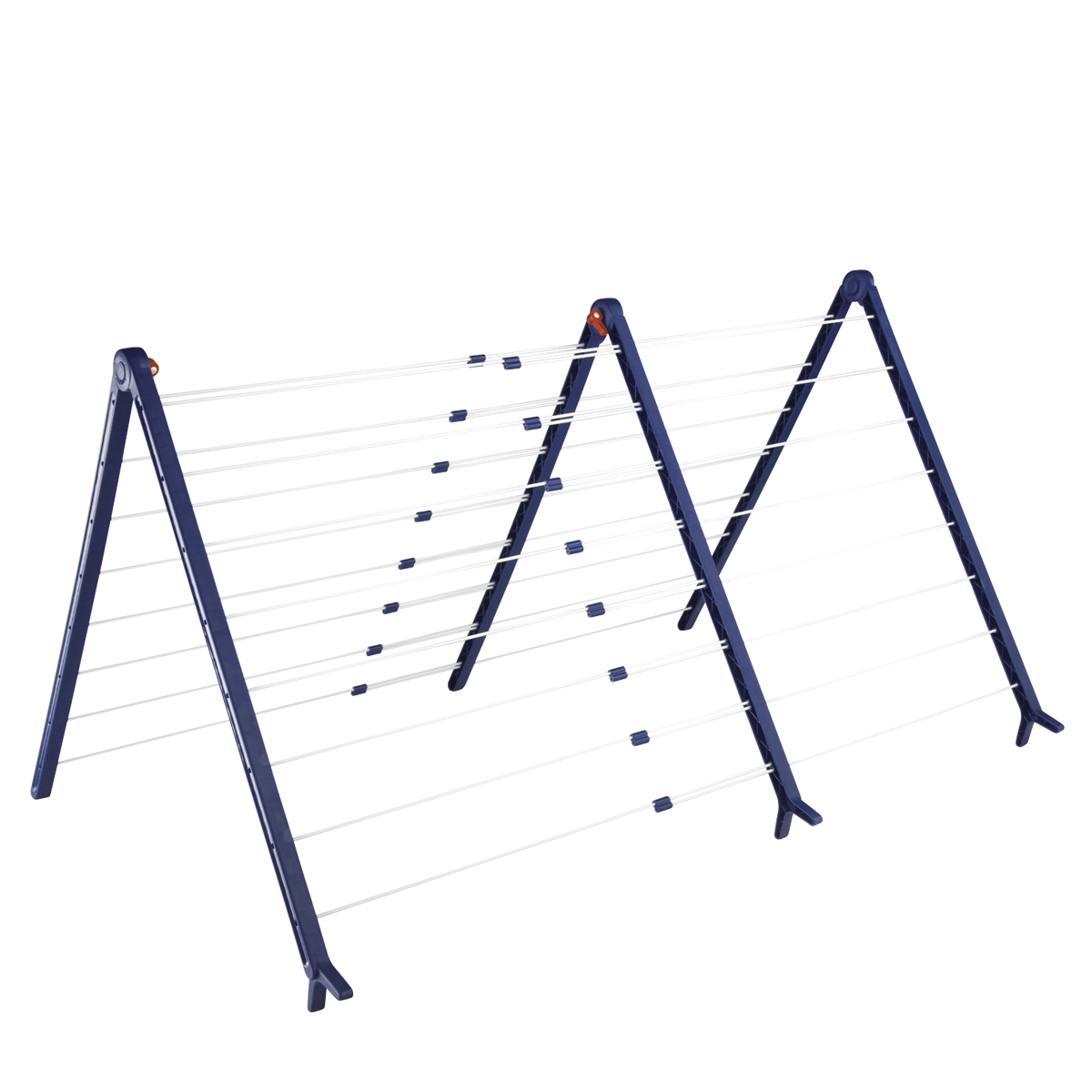 Rörets torkstativ Nano - kompakt design som tar minimalt med plats hopfälld - låser benen i infällt läge - försedd med krok för smidig förvaring - vid benställning för optimal stabilitet - extra kraftiga trådar - 9 m torkyta - 43x110x85 cm - 5-års garanti