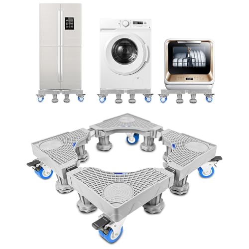 WUFANC Tvättmaskinsställ, med 8 Fötter och 4 Hjul, är Lämpligt för Tvättmaskiner, Kylskåp Och Torktumlare. Det är Höjdjusterbart Från 41-64 cm, Och har Halkskydd och Stötdämpning (Grå - 300 kg)