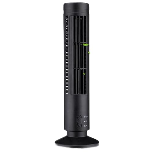 Tornfläkt, liten stående skrivbordsfläkt med 2 hastigheter, justerbar vinkelnattlampa, USB-ström, personlig bladlös, fläkt elektrisk bordsfläkt för hem sovrum kontor (svart)