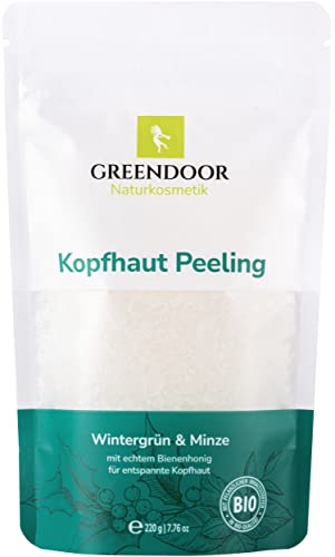GREENDOOR hårbotten peeling vintergrön pepparmynta 220 g mot torr stressad hårbotten, hårsäckarna cirkuleras bättre/vårdas, hårtillväxt främjas naturligt, naturkosmetikhår