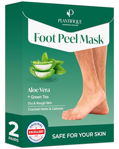 PLANTIFIQUE Fotpeelingmask 2-pack för Män | Dermatologiskt Testad, Reparerar Hälar & Tar Bort Torr, Död Hud för Baby Mjuka Fötter | Exfolierande Fotpeelingmask för Torra Spruckna Fötter