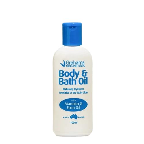 Grahams Natural Body & Bade-olja – fuktgivande badolja och duscholja – för torr hud, neurodermatit och psoriasis – steroidfri och naturlig