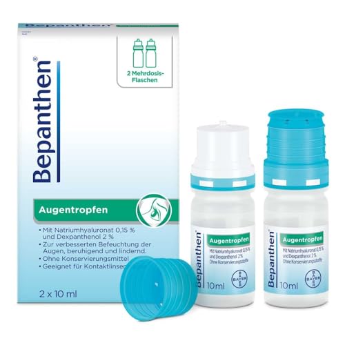 Bepanthen Ögondroppar, hjälp för torra, rodnade, kliande eller brännande ögon, 2 x 10 ml