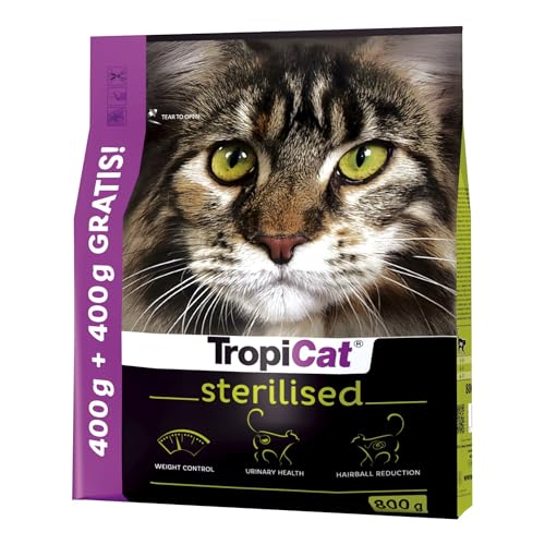 Komplett torrfoder för vuxna katter efter sterilisering med kyckling TROPICAT STERILISED 800g