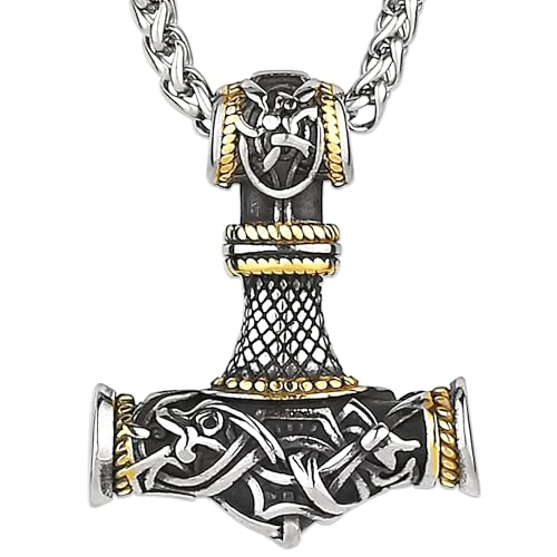 JUZICHEN Kedja herr, Tors hammare halskedja, viking kedja, Tors hammare hänge med keltisk knut, Thor Hammer kedja, Mjölnir kedja, 60 cm kedja, 1, Rostfritt stål, Rostfritt stål