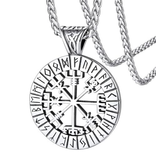KINGWHYTE Viking Tors hammare talisman varg halsband 925 sterling silver nordisk vintage viking Vegvisir Mjolnir Odin kompass amulett hänge med rostfritt stål 55 cm (20+2 tum), Sterlingsilver, Ingen