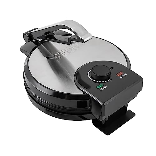 BuRuiYoten Tortilla Chapati Roti Press Papad Maker non-stick pannkaksmaskin elektrisk pizza rostfritt stål dubbelsidig uppvärmning elektrisk pizza bröd tacos av gjutjärn taco tacopress för hemmagjord