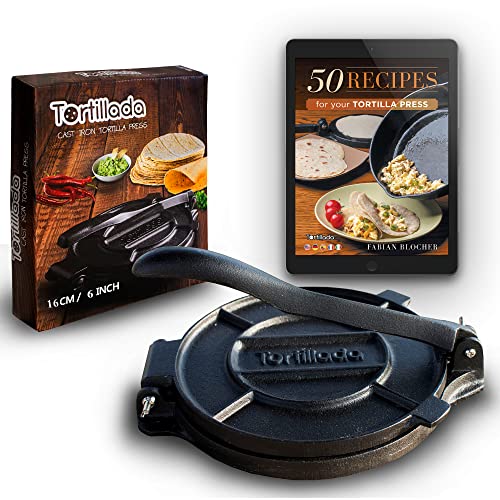 Tortillada - Premium Tortillapress Pressgjutjärn + E-Book "50 tortilla recept" (16 cm)