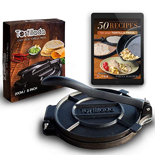 Tortillada - Premium Tortillapress Pressgjutjärn + E-Book "50 tortilla recept" (20 cm)