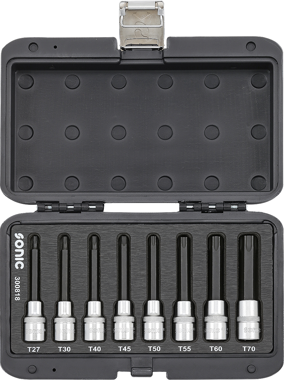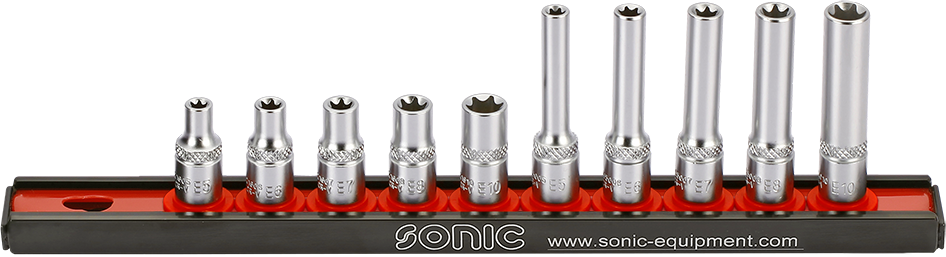 Hylssats 3/8" Torx T8-T50 90mm Långa Med Hållare 10-Delar Sonic
