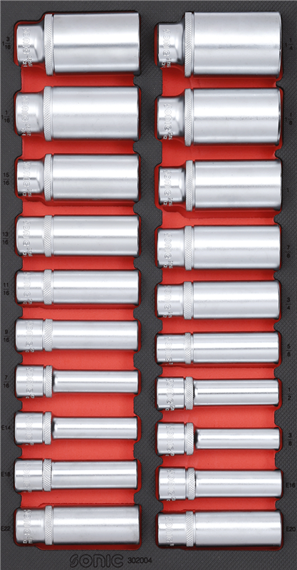 Hylssats 1/2" Torx & 12-kant Lång - 20-delar SAE, SFS (Sonic Foam System) 1/3
