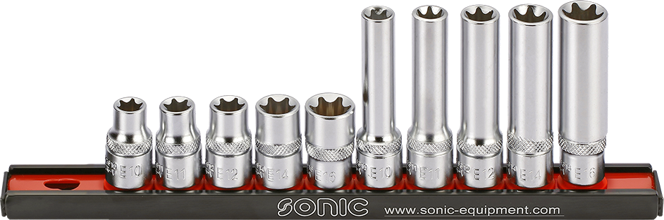 Hylssats 3/8" Torx E10-E16 Korta/E10-E16 Långa Med Hållare 10-Delar Sonic