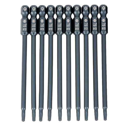 10pcs 100mm Long Torx Screwdriver Bits Set S2 Alloy Steel 1/4" Hex Shank Magnetic Security Star Head Screwdriver Bits T10 (H6.3 * 100mm*T10)