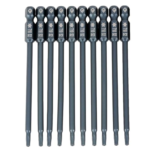 10pcs 100mm Long Torx Screwdriver Bits Set S2 Alloy Steel 1/4" Hex Shank Magnetic Security Star Head Screwdriver Bits T10 (H6.3*100mm*T10)