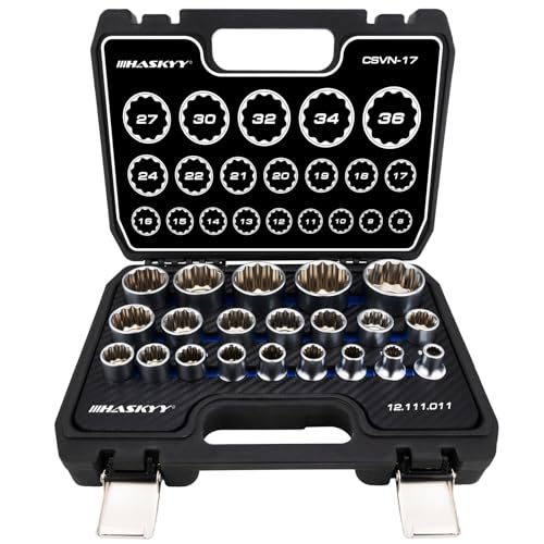 21 st. HASKYY® multitand hylsnyckel mutterlåda I 8–36 mm 12 kanter – 6 kanter I XZN Torx uttag set system