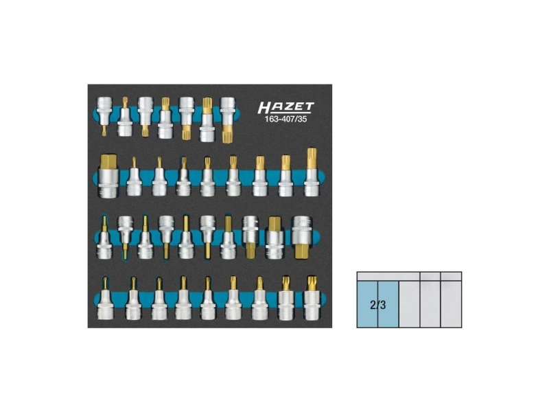 Hazet 163-407/35 Unbrako, Multitand (Xzn), Inre Kilprofil, Internal-Torx Top Wrench Bit-Sats 35 Stycken 1/2 (12,5 Mm)