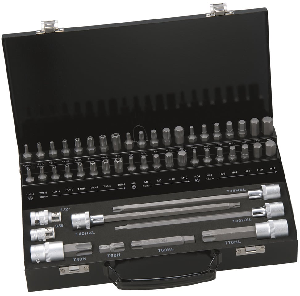 Kamasa Tools Bitshylsa 1/4" & 1/2", Torx, Sats 26 delar, Komplett sats av bitshylsor och nycklar för Torx* bultar.
