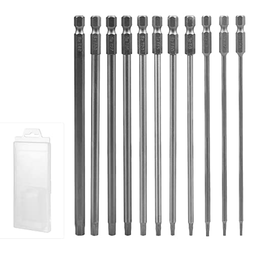 11 stycken 200 mm torxbitsset lång, torx-skruvmejselset, magnetiskt torxset, stjärnhuvud bitssats lång, S2 stål torx bits, T6, T7, T8, T10, T15, T20, T25, T27, T30, T40