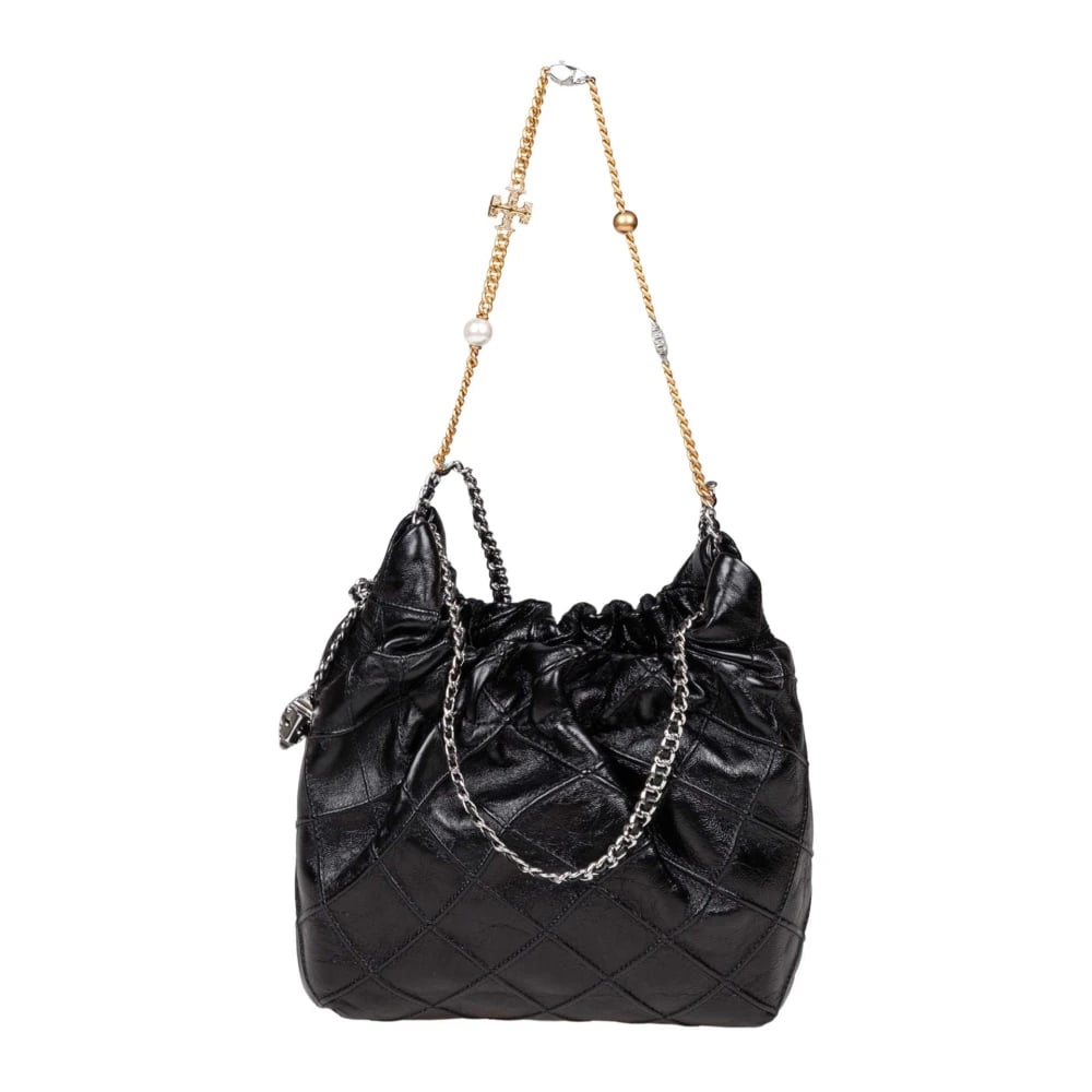 Tory Burch Fleming Distressed Hobo Bag - Black - ONE SIZE