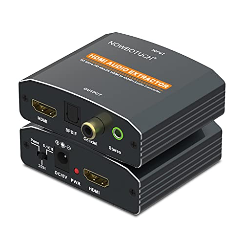NOWBOTUCH HDMI Audio Extractor Separator 4K HDMI till HDMI-ljudomvandlare + koaxial + optisk Toslink SPDIF + 3,5 mm stereo analogt ljud, HDMI-ljudadapter för PS4/5, Fire TV, Xbox med mera