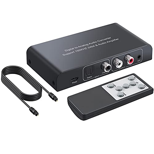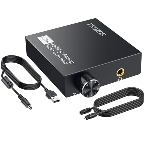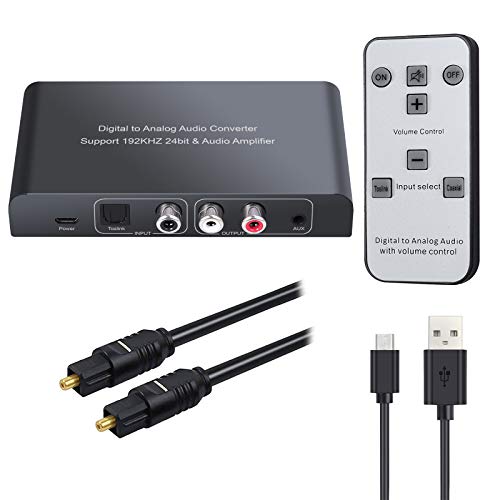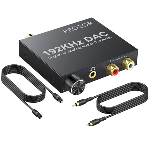 PROZOR DAC-omvandlare 192 KHz koaxial optisk Toslink SPDIF till RCA 3,5 mm med volymjusterande fjärrkontroll digital till analog ljudomvandlare med optisk kabel för PS3/PS4 Blue-ray TV DVD