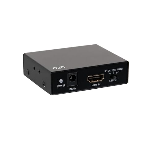 C2G HDMI ljudextraktor med TOSLINK, SPDIF och 3,5 mm – 4K 60 Hz kompatibel med Xbox, Blu-ray, DVD, PS5, Smart TV, Soundbar, bildskärmar