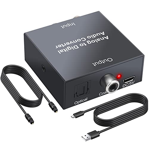 ADC Converter, PORTTA Analog RCA R/L till Digital SPDIF Optisk Toslink Coaxial Audio Converter Adapter för DVD Blu-ray HDTV Amplifier Stereo Soundbar