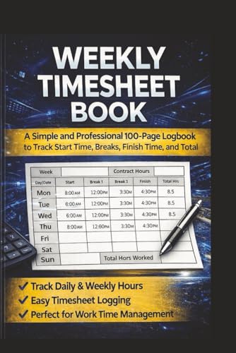 Weekly Timesheet Book: A Simple and Professional 100-Page Logbook to Track Start Time, Breaks, Finish Time, and Total Work Hours – Includes Owner Info Page