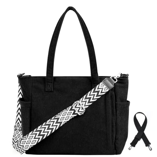 Cozary Tote Bag manchester, kabinväska för kvinnor, stor axelrem, handväskor för män, med dragkedja och fickor, justerbar axelrem för skola, arbete, shopping, svart