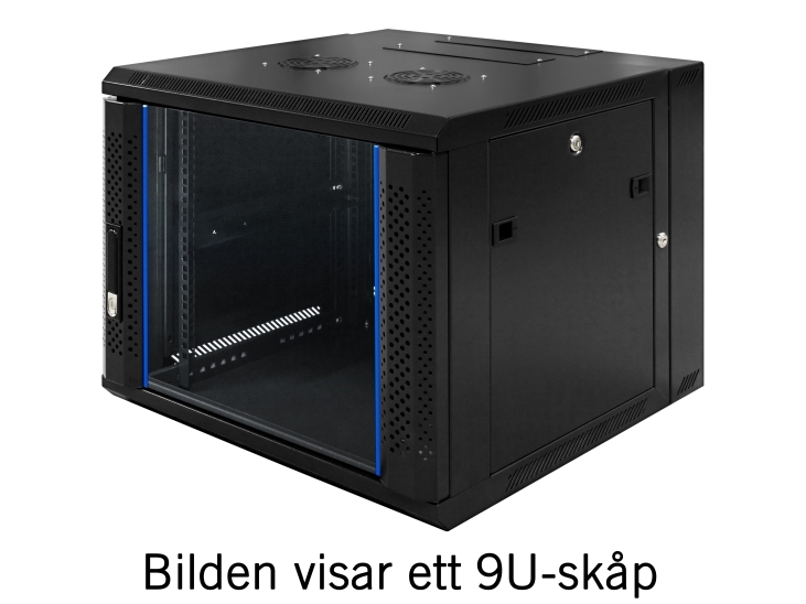 19” Wall Cabinet, 12U, 600 × 600, Glass Door, Black