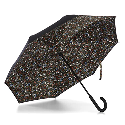 Totes InBrella Paraply med omvänd stängning, vikbart med automatisk öppning, kompakt, vindtät design, svart, Svart, 46" Canopy