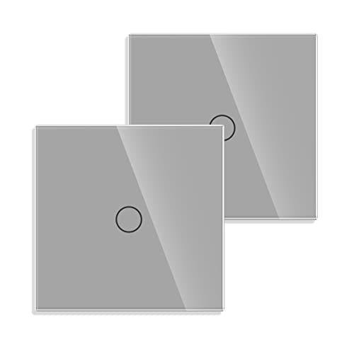 JIMEIDA 2-pack touch-strömbrytare i grått, inbyggd strömbrytare med glaspanel och statusLED, ingen neutral ledare krävs, 1-vägs 1-polig väggströmbrytare, AC 240 V, 500 W
