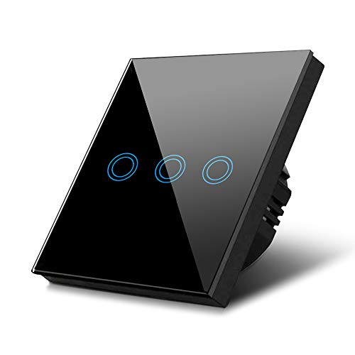 BSEED Touch-strömbrytare i panel av härdat glas, touchskärm, ingen wifi, 1 kontakt, 1-vägs, LED-lampa, härdat glass, pekskärm, 240 V, väggströmbrytare