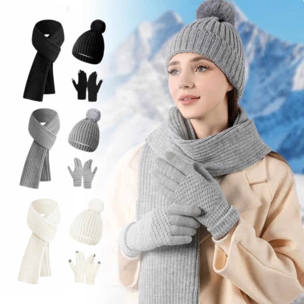 Varmt vinterset 3-delar - Mössa, halsduk & touchvantar