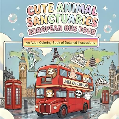 Cute Animal Sanctuaries European Bus Tour: An Adult Coloring Book of Detailed Illustrations