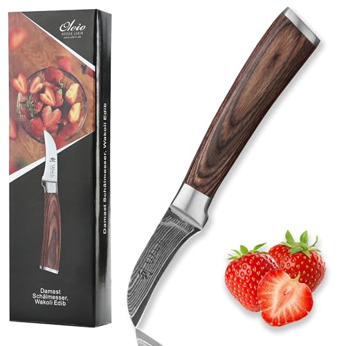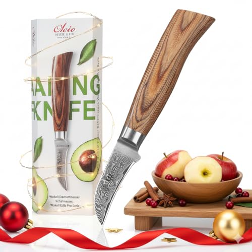 Wakoli EDIB Pro Premium skalkniv och tournierkniv, 6 cm blad i 67 lager damaskusstål, VG10-kärna, ergonomiskt pakkaträhandtag – liten japansk frukt- och grönsakskniv i presentask