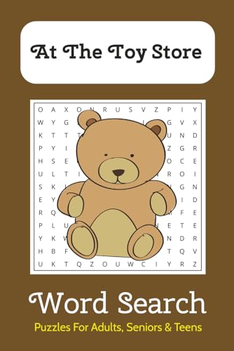 At the Toy Store Word Search: 50+ Word Search Puzzles with Easy-to-Read Print about Dolls, Trains, Action Figures and More. 6x9 inches, 110 pages. Perfect Gift for Kids, Families, and Puzzle Fans