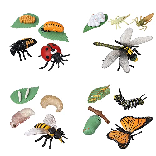 JOKFEICE 16 stycken Insekt Toy Life Cycle of Futterfly, Honey Bee, Dragonfly & Ladybird Action Model, Plastic Bug Figures Toy, Early Education Toy Science Project Christmation Födelsedagspresent