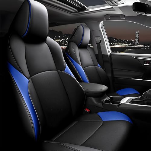 AOMSAZTO Bilsätesskydd av konstläder, passar för Toyota CHR 2018–2022, komplett set med sätesöverdrag, kompatibelt med krockkudde, vattentätt, svart och blått