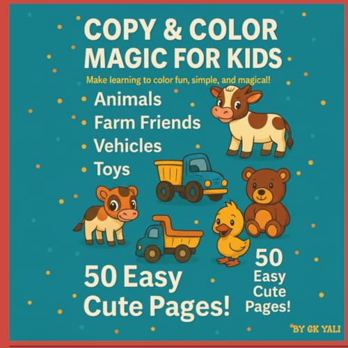 Copy & Color Magic for Kids – 50 Cute & Easy Pages!: Animals • Farm Friends • Vehicles • Toys | Side-by-Side Colored Examples & Matching Outlines | Perfect for Ages 3–8