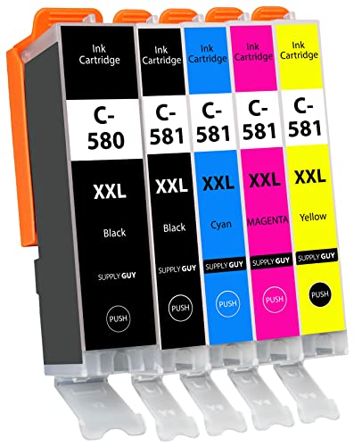 Supply Guy 5 bläckpatroner XXL kompatibla med Canon PGI-580 CLI-581 flerpack för Pixma TR7500 TR7550 TR8500 TR8550 TS6100 TS6150 TS6151 TS6250 TS6251 TS6350 TS63551 TS705 TS9540 TS9541c
