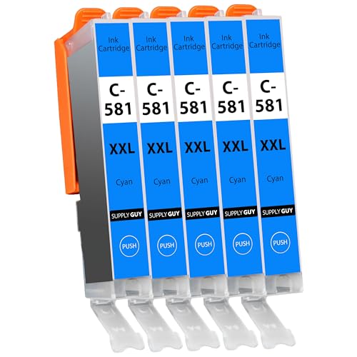 Supply Guy 581XXL Bläckpatroner Cyan kompatibla med Canon CLI-581 XXL för Pixma TS705 TS705a TS6350 TS6350a TS6351 TS6351a TS6300 TR8550 TS9550 Multipack 5 patroner 581 XXL