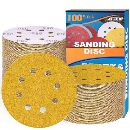 ALPXUXP Slipskivor 125 mm 8 Håls Rund Slippapper 120 Stycken Set För Excenterslipmaskin Inkluderar Korn 40/60/80/120/180/240/ 320/400 x 15st För Slipning Trä 、Metall、Bilar、Sten Etc