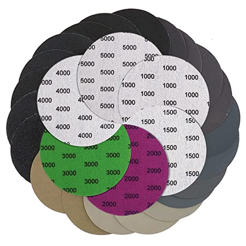 60 stycken Torr och Våt sandskivor, 75mm Sandskiva Runda Slipskivor för slipning av korn 1000/1500/2000/3000/4000/5000 för Metall, Trä, Möbler, Läder, Bil