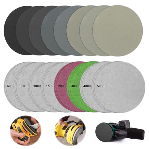 24 stycken slippapper runt 125 mm kardborreband, utan hål kornighet, 600/800/1000/1500/2000/3000/4000/5000 våta torra slipskivor, excentrisk slipblad för metall trä glas bil polering