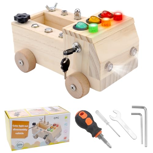 HENGBIRD Montessori trä skruvbräda bil-ljusströmbrytare, motorikleksak motorikbräda Montessori Busy Board träleksak pedagogisk leksak present för barn pojkar flickor från 3 år