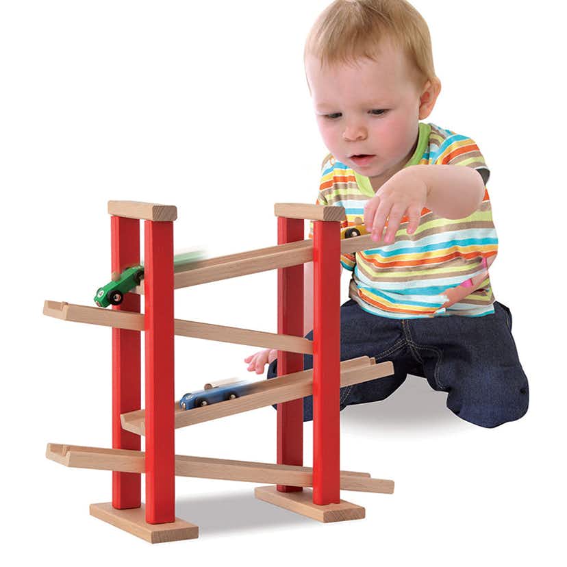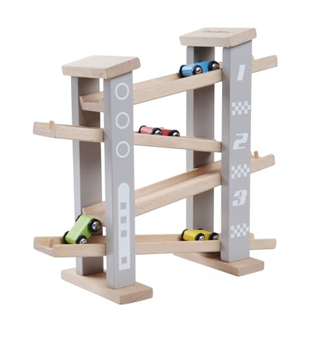 Eichhorn Bilbana – tävlingsbana i trä med 4 fordon, 5-TLG, främjar observation och motorik, av FSC-certifierat bokträ, 33 x 30 cm, från 1 år