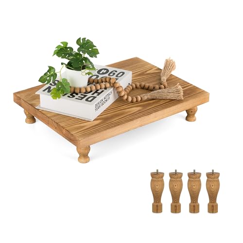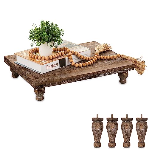 Hanobe Dekorativ träbricka: bondgård trä piedestal visningsstativ rustik bricka upphöjare mittpunkt för kaffebar kök matsal hem bordsdekor, kort och hög fot