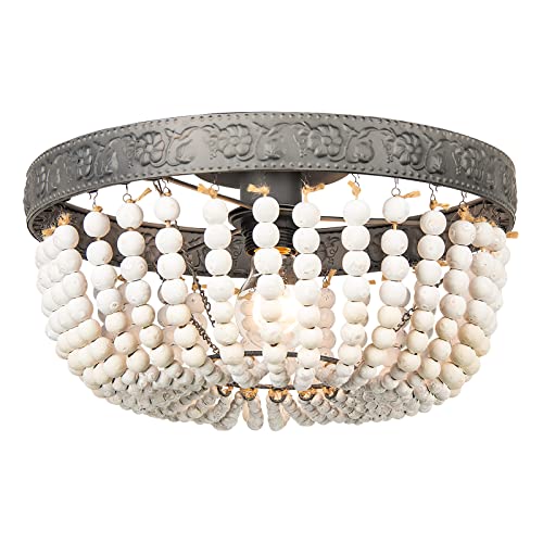 FIRVRE trä pärla ljuskrona bohemiska ljuskrona bondgård ljus för matsal sovrum hall trappor kök ö (Vit-1)
