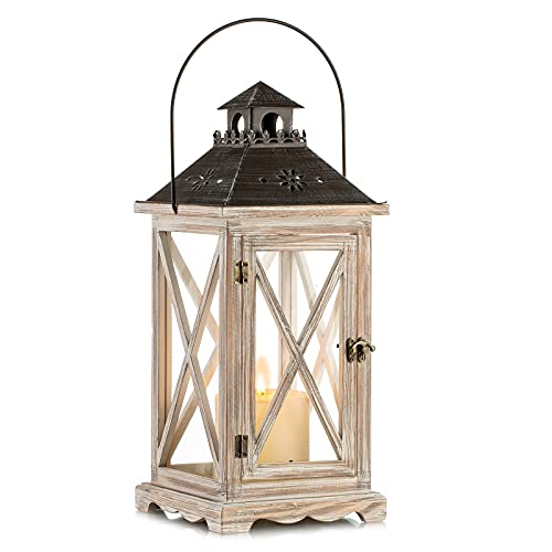 Romadedi Dekorativ ljuslykta rustik stor - nödställd trä ljushållare lykta för bondgård dekoration shabby chic bröllop eldstad spisel uteplats bordsdekor 48 cm lång, storlek L